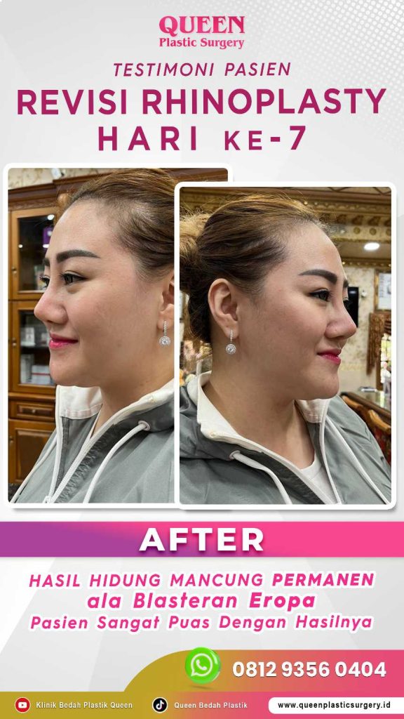 Sudah dapat dipastikan hanya Klinik Kecantikan Queen Plastic Surgery yang memiliki segudang prestasi luar biasa untuk hasil operasi Rhinoplasty dengan tulang rawan. Memiliki dokter spesialis bedah plastik terbaik karena sudah menangani banyak pasien sejak puluhan tahun lalu. Jadi sudah dapat dipastikan Rhinoplasty di Klinik Kecantikan Queen Plastic Surgery adalah solusi bagi mereka yang ingin memiliki hidung mancung namun terlihat alami. Queeners tidak perlu khawatir dengan reputasi yang dimiliki Klinik Kecantikan Queen Plastic Surgery. Segera datang dan hubungi nomor hotline dibawah ini dan pastikan mendapat promo-promo spesial lainnya. Klinik Kecantikan Queen Plastic Surgery solusi cantik hidung mancung dengan hasil alami.