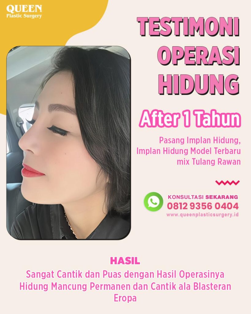 Sudah dapat dipastikan hanya Klinik Kecantikan Queen Plastic Surgery yang memiliki segudang reputasi luar biasa untuk hasil operasi Rhinoplasty dengan tulang rawan. Memiliki dokter spesialis bedah plastik terbaik karena sudah menangani banyak pasien sejak puluhan tahun lalu. Jadi sudah dapat dipastikan Rhinoplasty di Klinik Kecantikan Queen Plastic Surgery adalah solusi bagi mereka yang ingin memiliki hidung mancung namun terlihat alami. Queeners tidak perlu khawatir dengan reputasi yang dimiliki Klinik Kecantikan Queen Plastic Surgery. Segera datang dan hubungi nomor hotline dibawah ini dan pastikan mendapat promo-promo spesial lainnya. Klinik Kecantikan Queen Plastic Surgery solusi cantik hidung mancung dengan hasil alami.