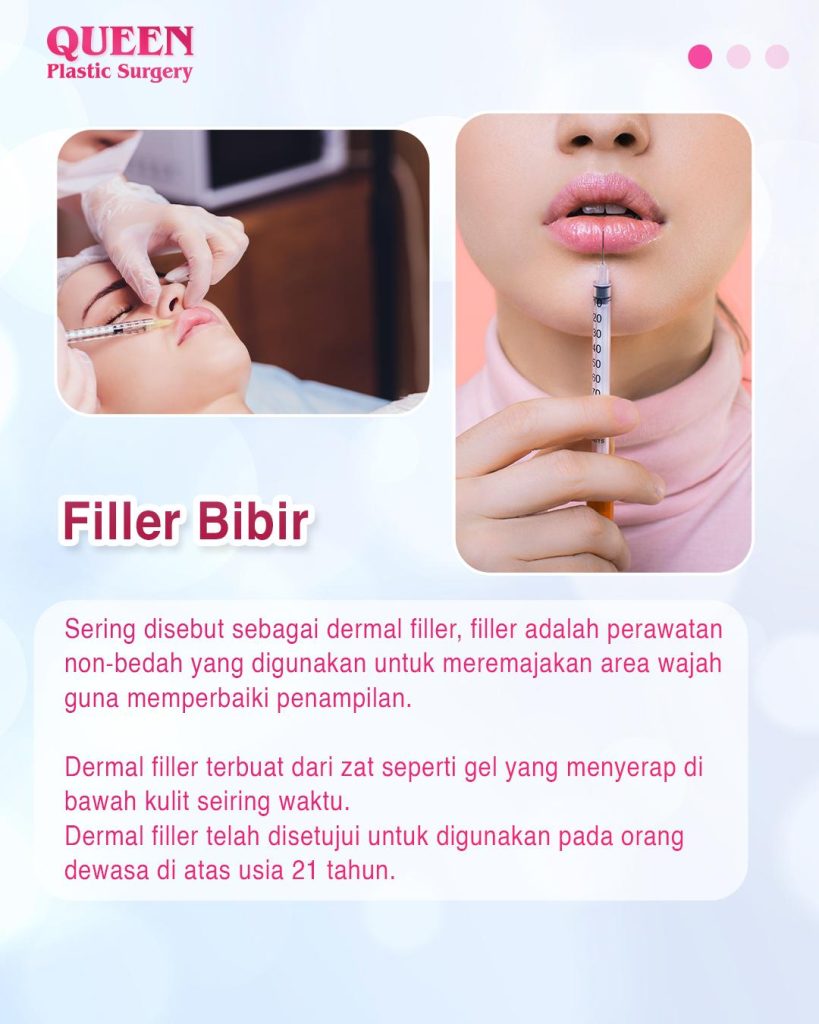 Sering disebut sebagai dermal filler, filler adalah perawatan non-bedah yang digunakan untuk meremajakan area wajah guna memperbaiki penampilan. Dermal filler terbuat dari zat seperti gel yang menyerap di bawah kulit seiring waktu. Dermal filler telah disetujui untuk digunakan pada orang dewasa di atas usia 21 tahun.