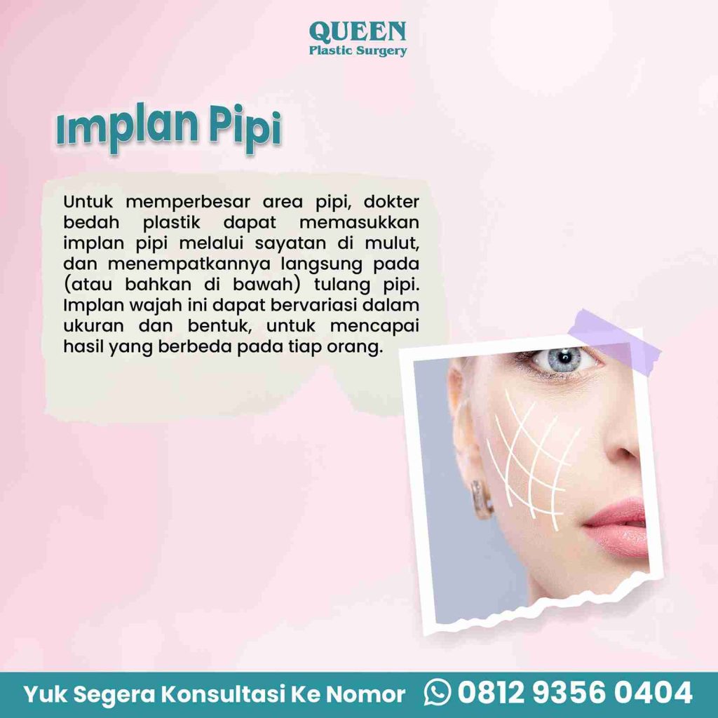 Klinik Kecantikan Queen Plastic Surgery selalu berkomitmen memberikan bukti bukan janji. Queeners dapat melakukan tindakan implan pipi dengan leluasa dan nyaman di Klinik Kecantikan Queen Plastic Surgery. Jika perlu konsultasi lebih lanjut silahkan hubungi hotline dibawah ini dan dapatkan harga spesial dari Klinik Kecantikan Queen Plastic Surgery. Jangan lupa dapatkan Promo menarik bulan ini!.