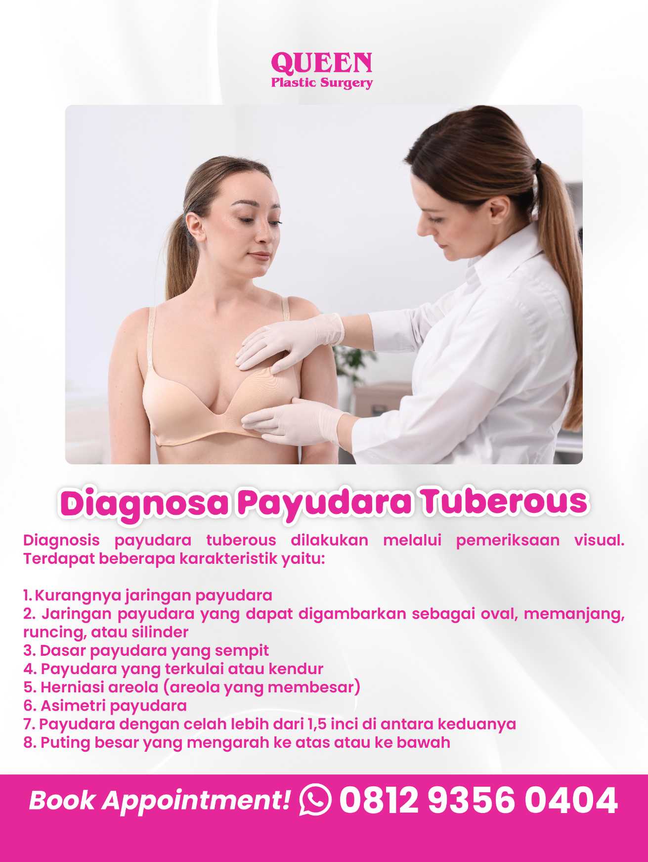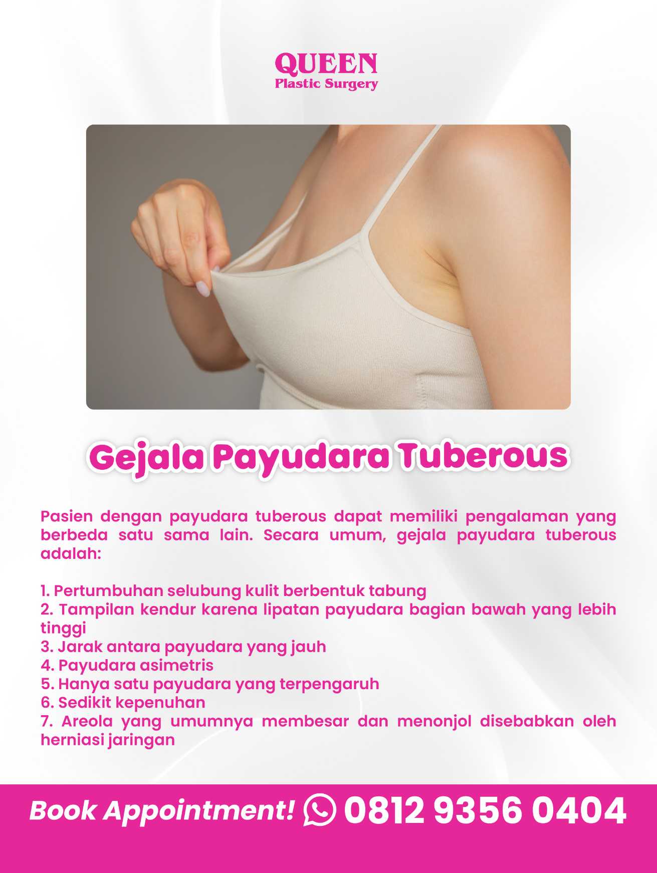Punya pertanyaan lebih lanjut tentang payudara tuberous dan opsi koreksi yang tepat untuk Anda? Konsultasikan kondisi Anda dengan dokter spesialis kami hari ini!